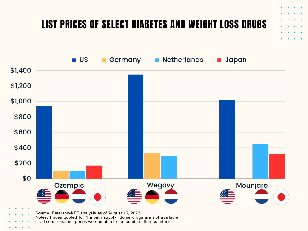 New weight loss drugs like Ozempic, Wegovy and Zepbound have been on fire - but how does pricing in the US compare to other countries?