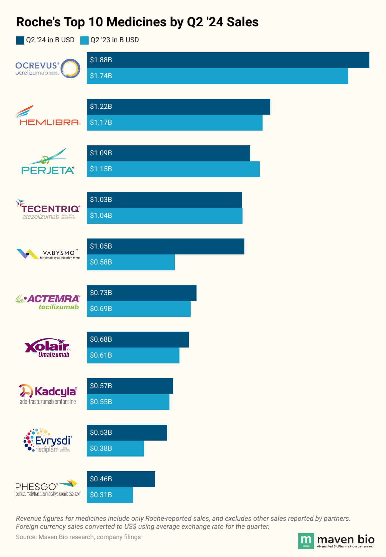 Vabysmo, Roche's ophthalmology therapy, emerged as a major growth driver for the Pharmaceuticals Division in the first half of 2024, accounting for approximately 75% of the division's overall growth. The drug achieved an impressive 79.3% YoY sales growth in Q2, driven by high global uptake among newly diagnosed patients and those transitioning from other treatment options.
