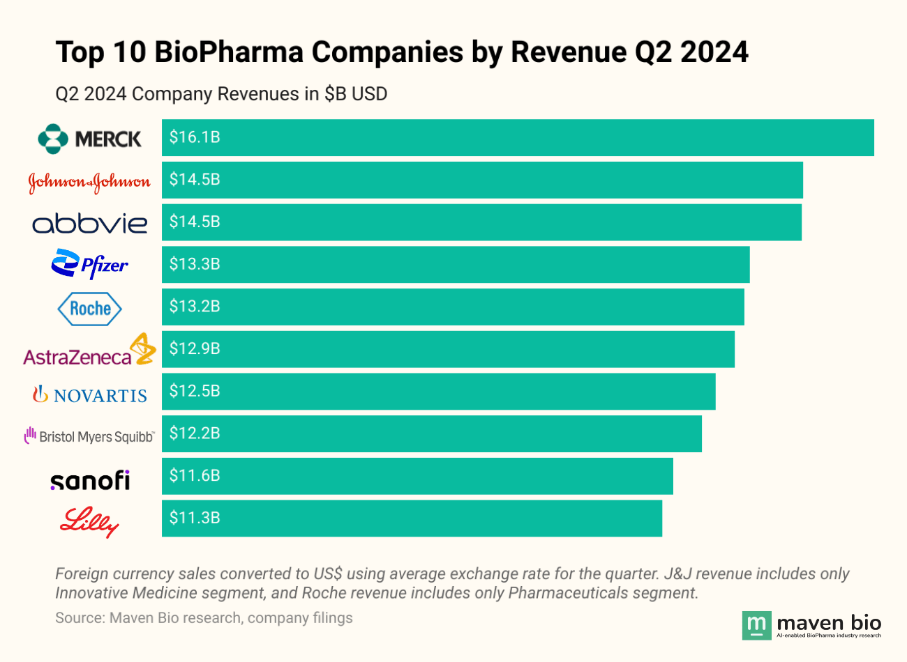 Top 10 BioPharma Companies by Revenue Q2 2024