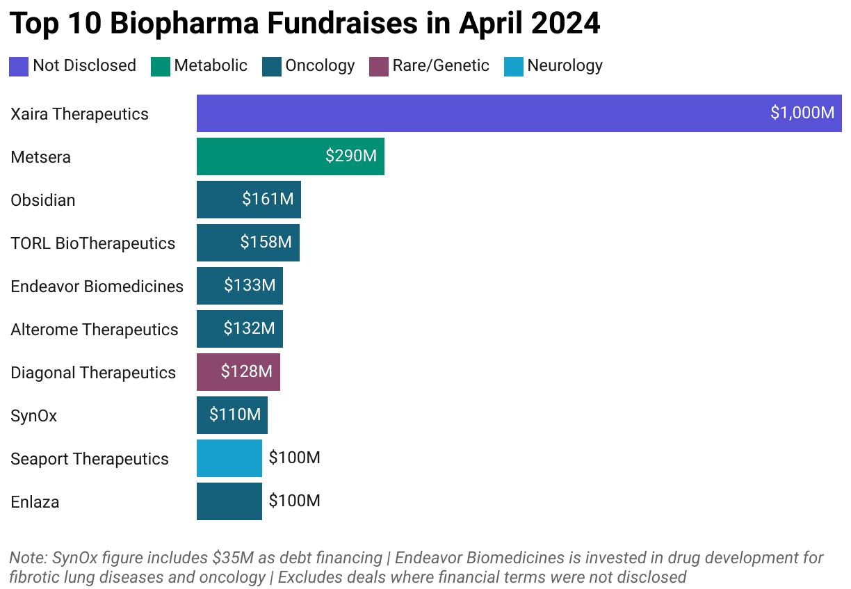 In April, the top 10 biopharma fundraising rounds totaled more than $2B, yet more than half the haul was from just two companies - here's the backstory: