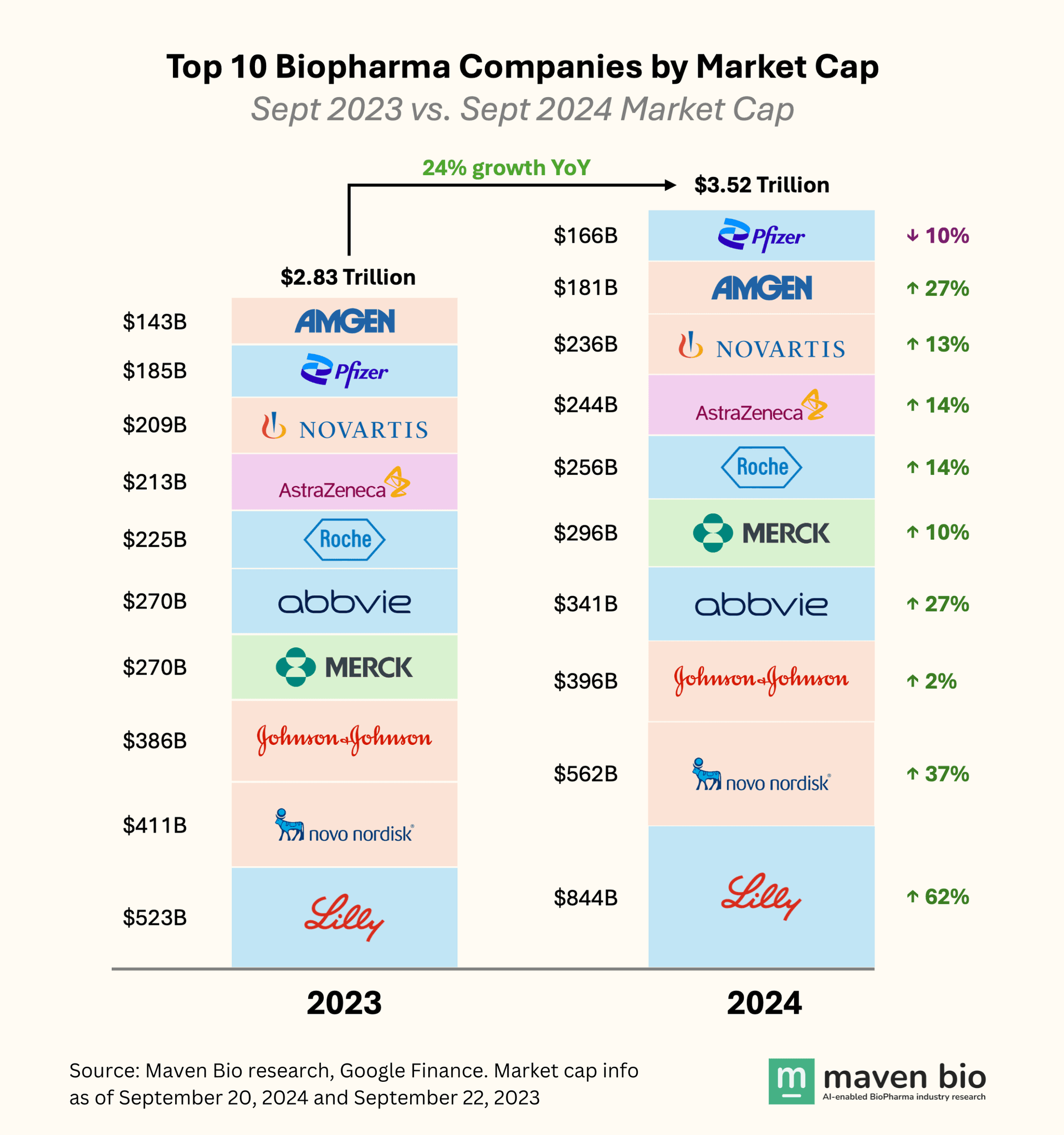 Top 10 BioPharma Market Cap Gains: September 2023 vs. 2024